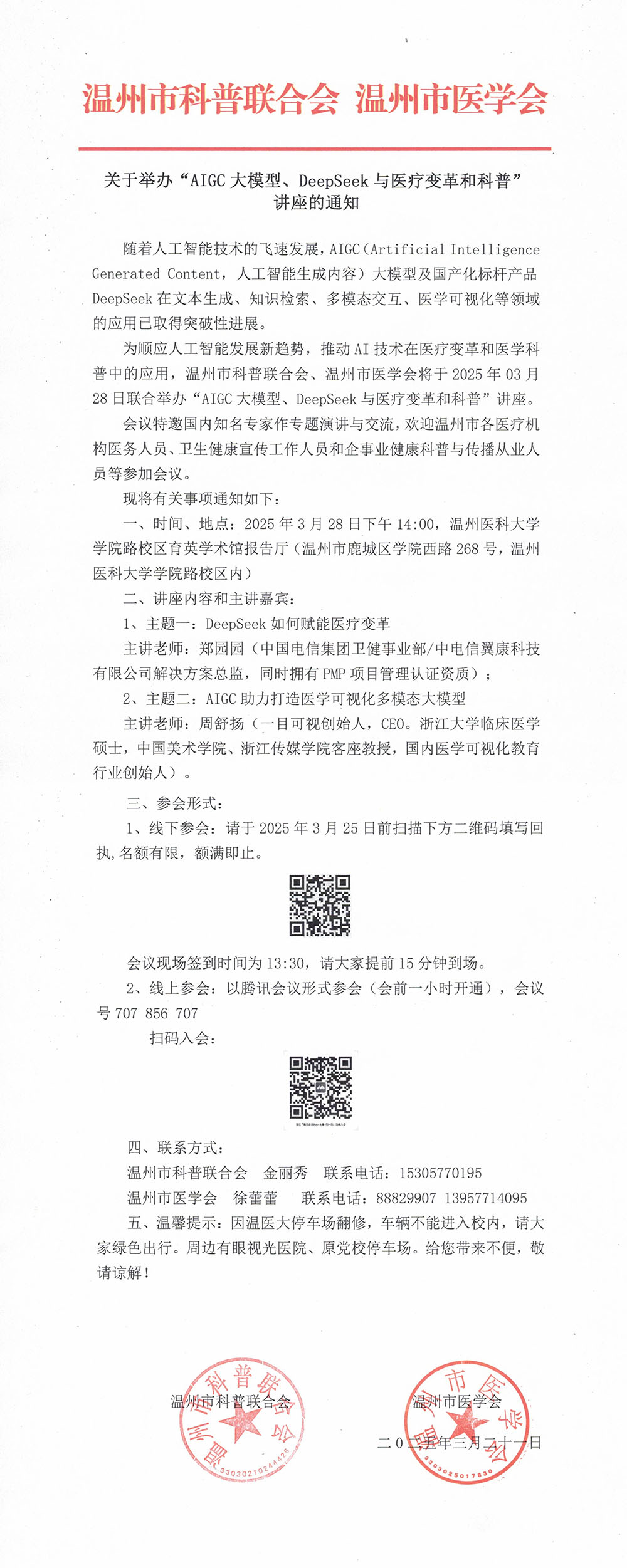 关于举办“AIGC大模型、DeepSeek与医疗变革和科普” 讲座的通知
