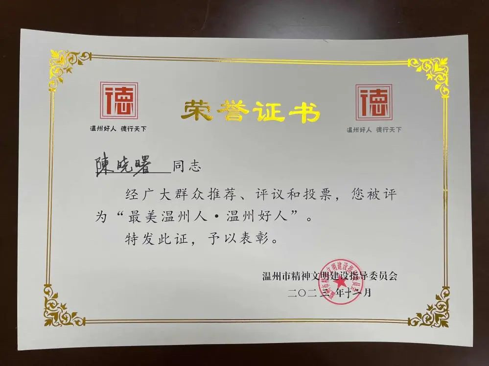 喜报!温州市医学会心血管病学分会委员陈晓曙被评为“最美温州人·温州好人”